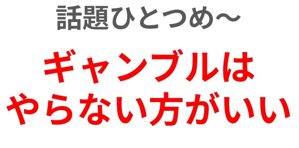 僕ぶっちゃけギャンブルって「やるな」って言ってても
